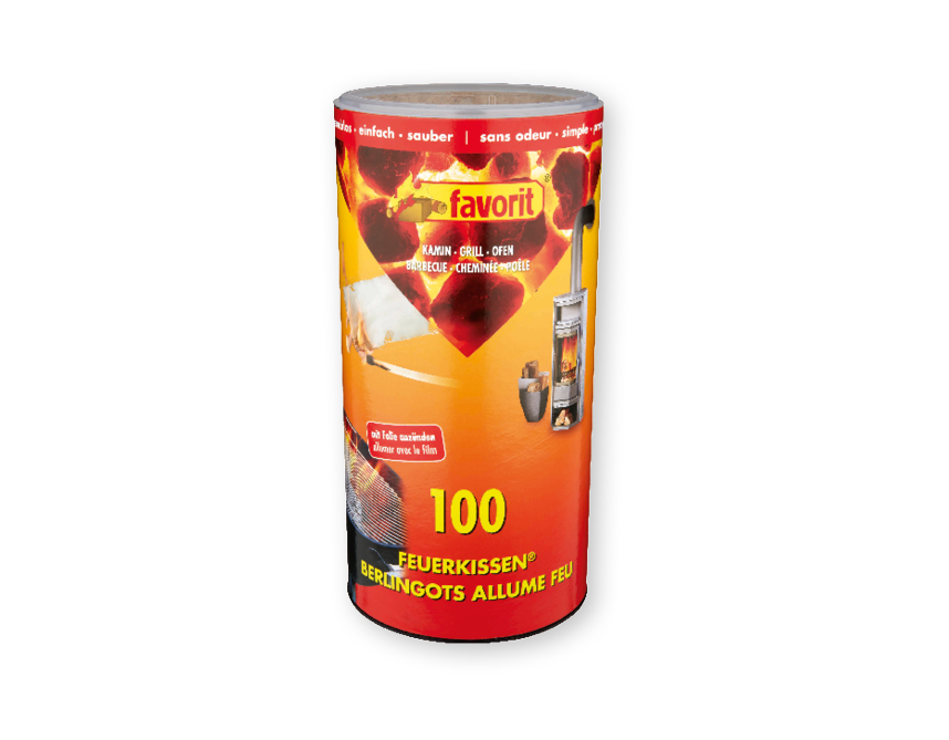 In Spezialfolie zum Mitentzünden in praktische Vorratsdose mit transparentem Deckel. Brenndauer: ca. 10 Minuten pro Anzünder. Für Grill, Kamin und Ofen.